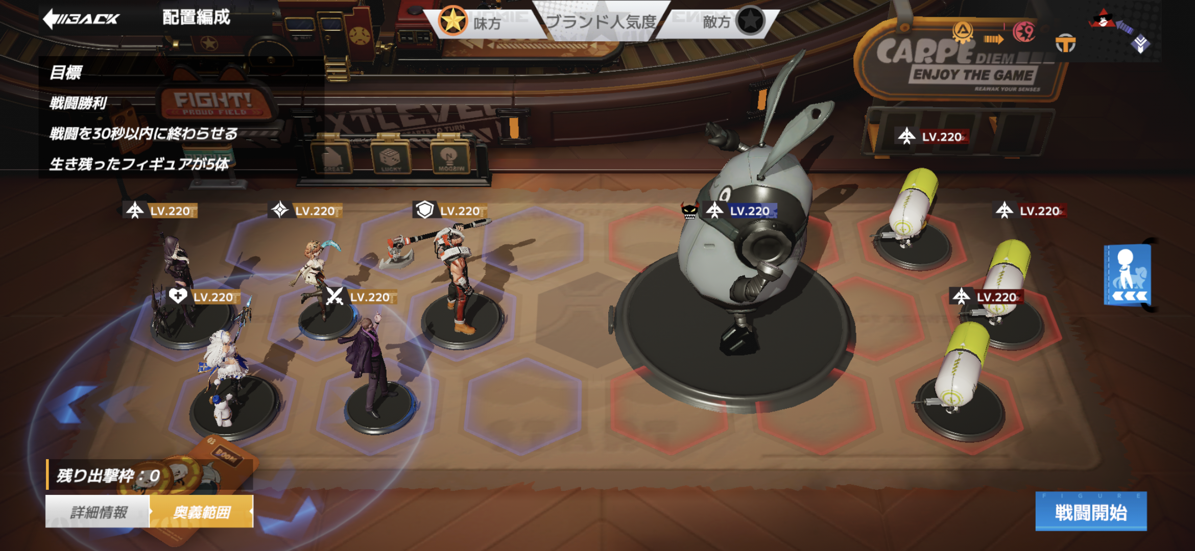 最後だけ布陣変更してなんとかクリアできた